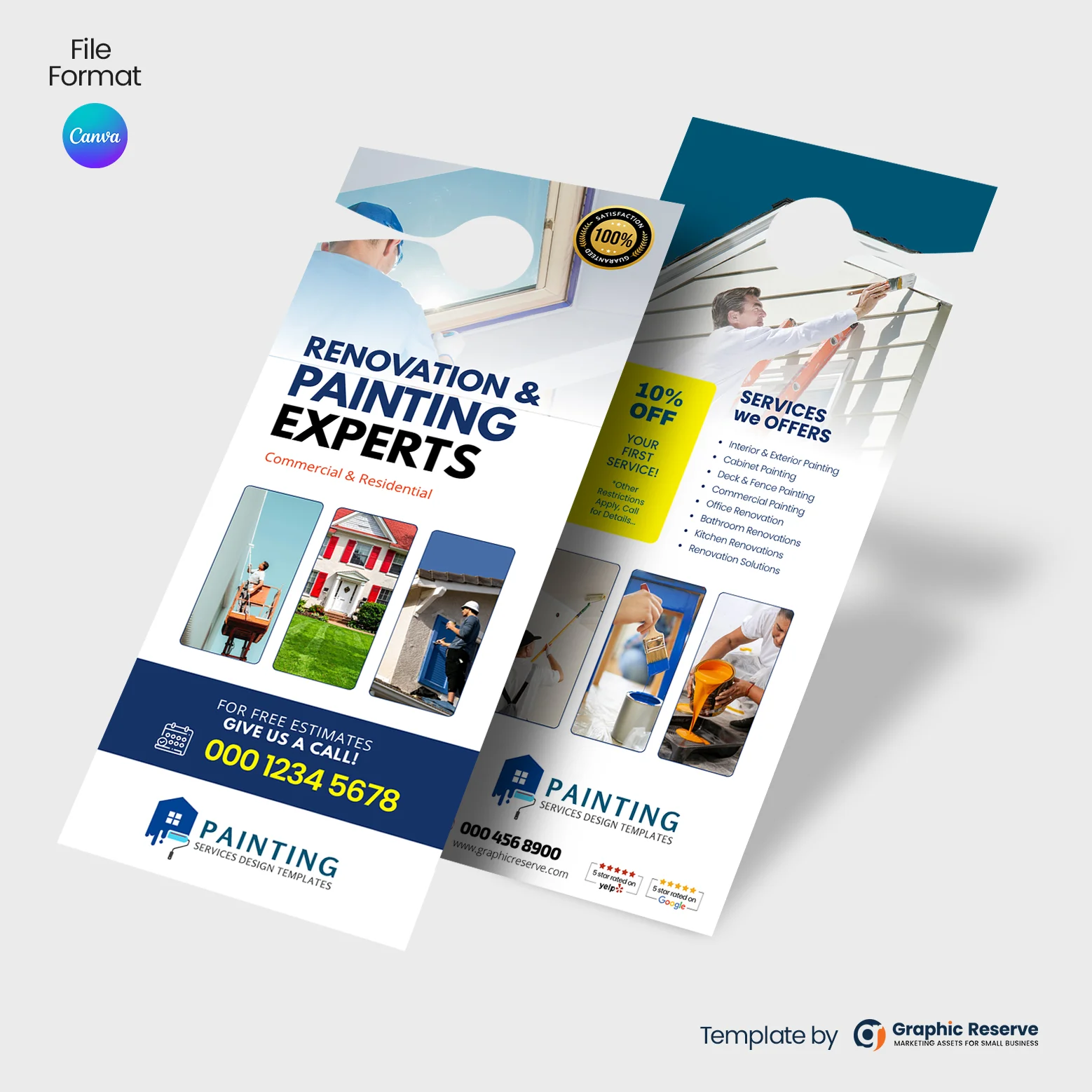 Upgrade your painting business marketing with this professionally designed painting service door hanger Canva template. Ideal for house painters, contractors, and local painting companies, this template gives you a clean and modern layout that’s easy to edit and ready to print.