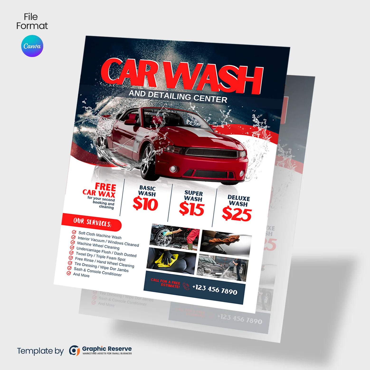 - Editable in Canva: Quickly customize text, images, logos, and colors to reflect your car wash business’s brand and pricing.