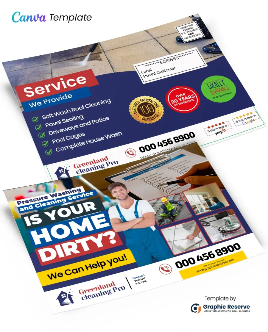 Cleaning Service Direct Mail EDDM Postcard Template | 9” x 6.5” Canva Design 🧼✨