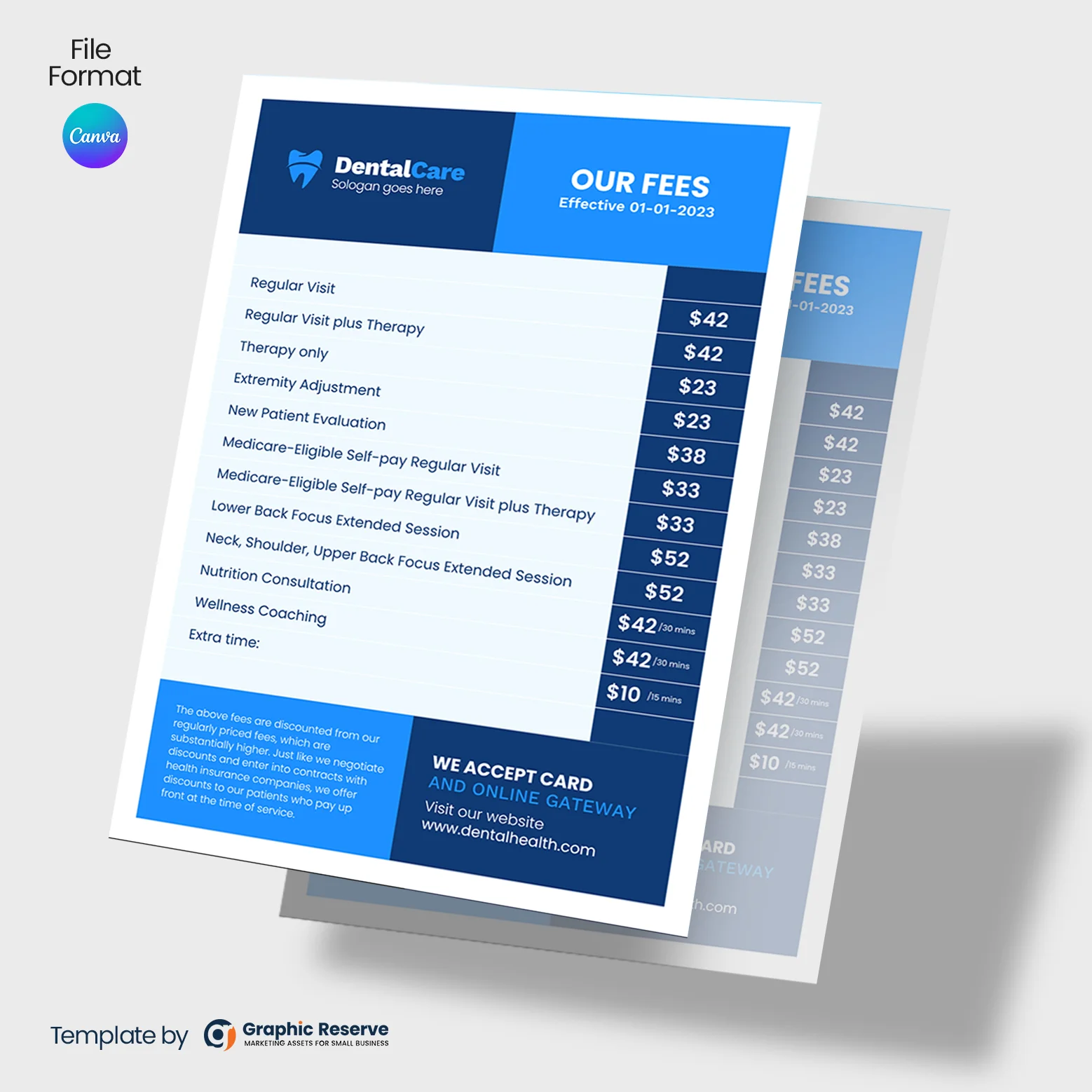Flyer Design Template for Quality Dentistry Dental Service Flyer Design has no doubt the best marketing tool for quick success in products or services in the local area. This template can be used in any Business like medicine, doctor, health, health care, dentist, etc. Flyer Design is the absolute best tool for businesses and the business that open a new branch. Images, texts, and colors are fully editable, You can edit them quickly and easily in Canva.