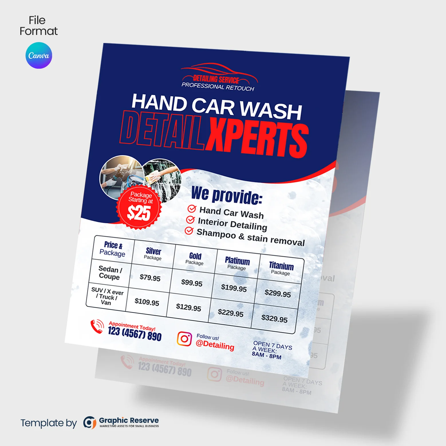 Automobile’s flyer marketing template idea for car washes, garages, auto detailing services, valets, dealerships, repair shops, and other automotive businesses. Boost your company’s sales and attract new customers! all in an online easy customizable canva template