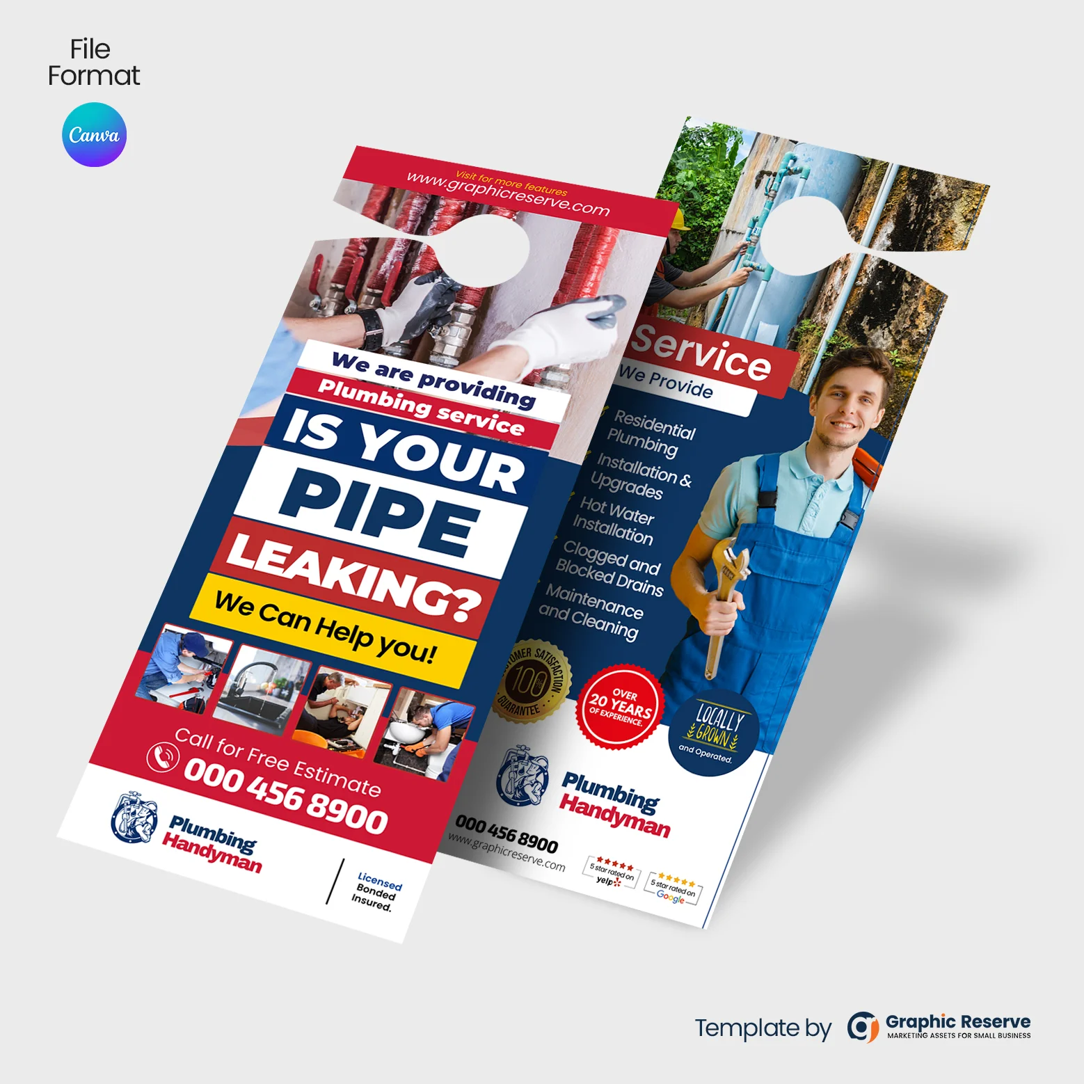 Drive immediate calls with this direct and powerful Plumbing Company Door Hanger template. The layout is optimized to place your phone number and call-to-action front and center, functioning as an exceptional Plumbing Promotion Door Hanger.