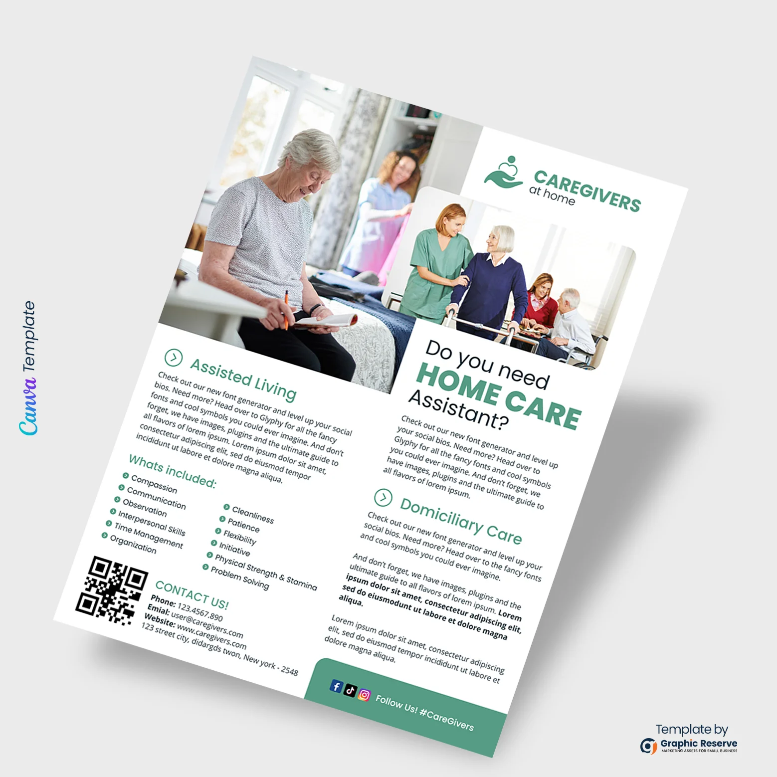 Home Care Flyer Canva Template Easy online customizable, all you need to know is the very basics of Canva to change your details and images then It`s print-ready!