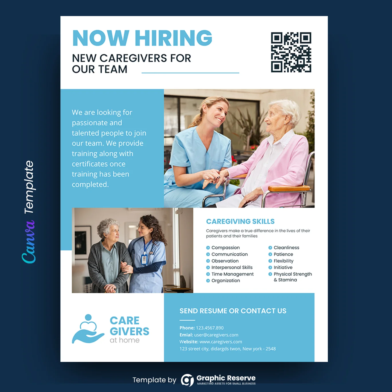 Home Care Canva Flyer Design Template Easy online customizable, all you need to know is the very basics of Canva to change your details and images then It`s print-ready!