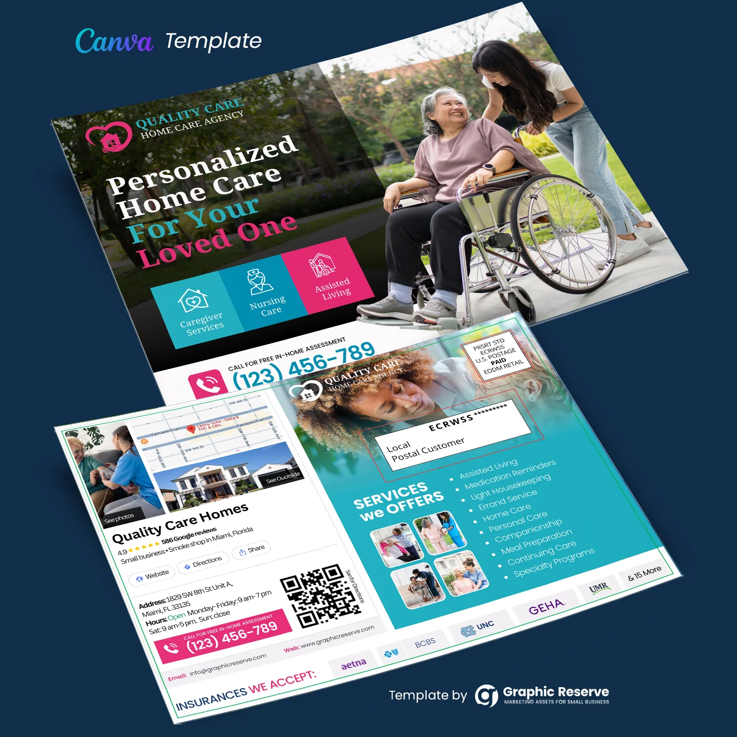 Stand out in your community and attract new clients with a postcard that combines functionality and style. Download the Home Care EDDM Postcard Design Template today and take your marketing efforts to the next level!