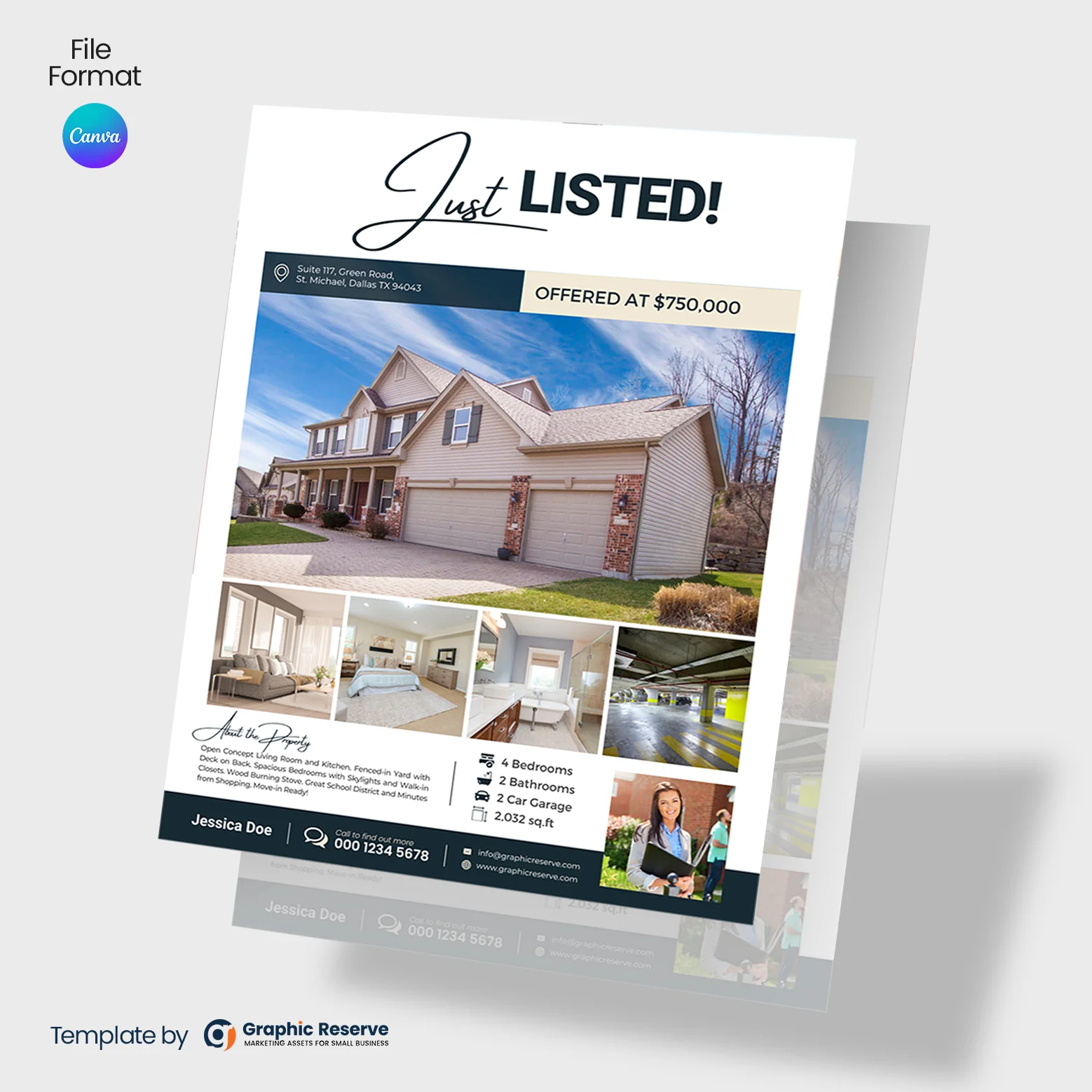 Just Listed Flyer Design for Real Estate Agents (Canva template)
