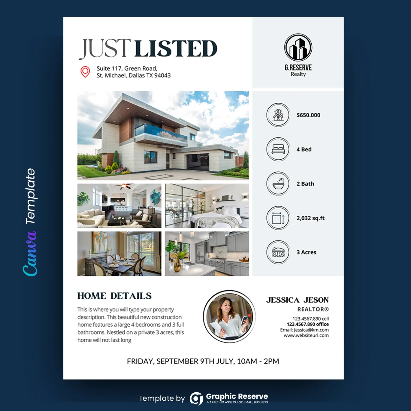 Be the first to review “Just Listed Real Estate Flyer Design (Canva template)”