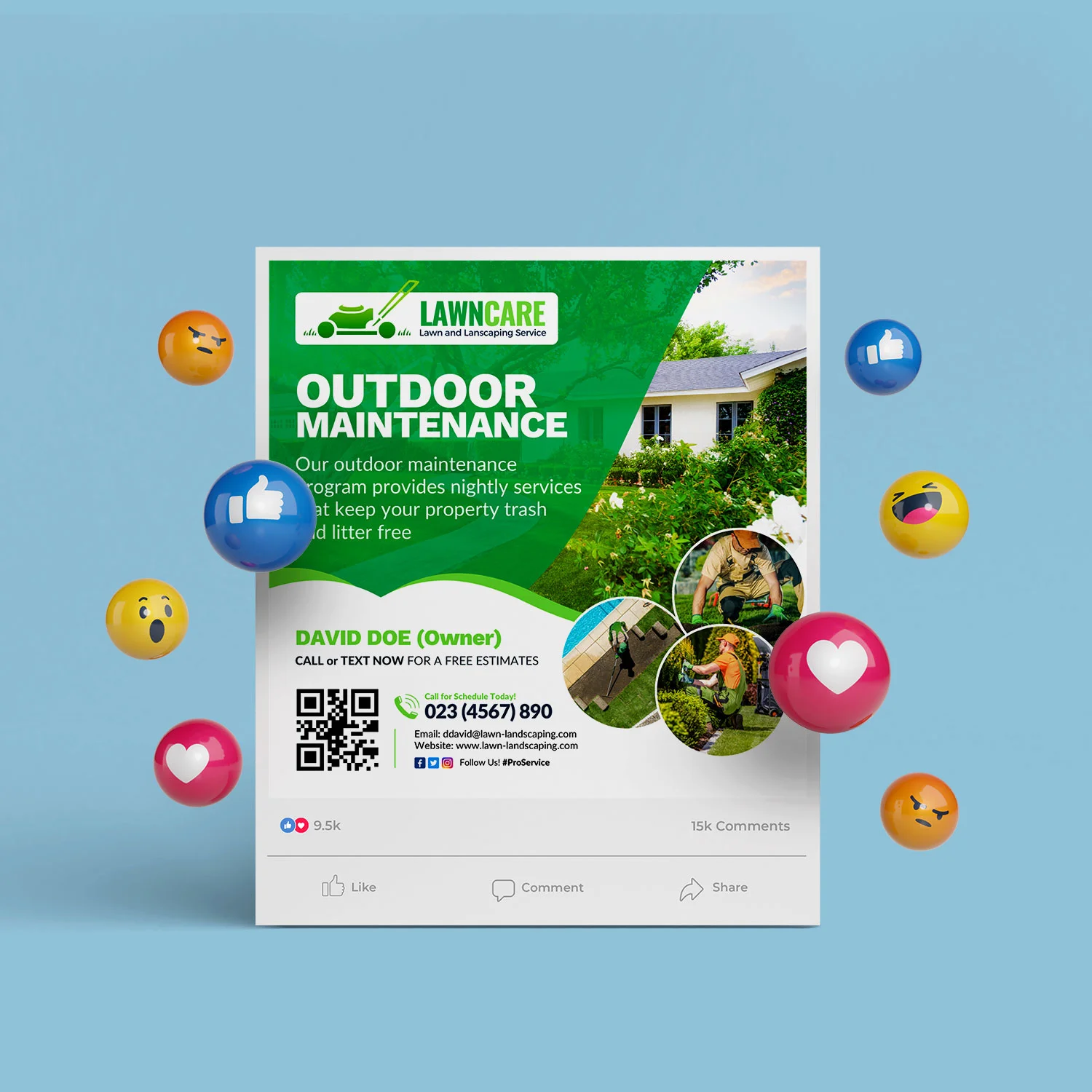Landscaping Canva Social Media Banner Easy online is customizable, all you need to know is the very basics of Canva to change your details and images then It`s print-ready!