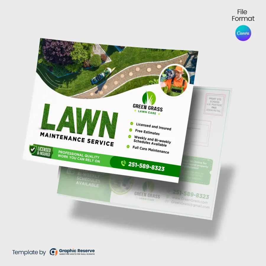 Lawn Care And Landscaping Maintenance Services EDDM Canva Postcard Template