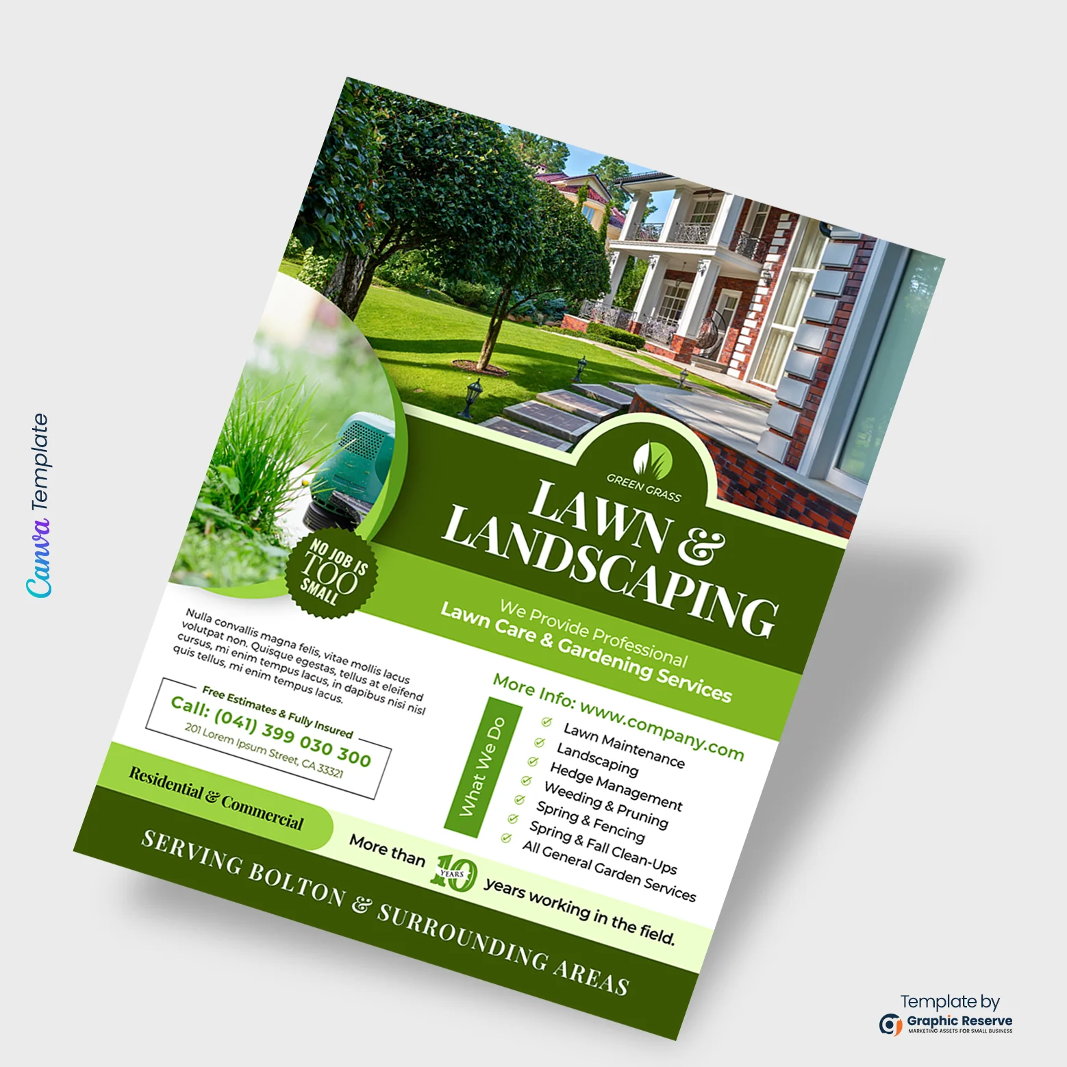Whether you’re looking to advertise your services to a specific neighborhood or distribute flyers throughout the city, this template is the perfect tool to help you reach your marketing goals. So why wait? Start customizing your flyer today and watch your lawn care and landscaping business grow!
