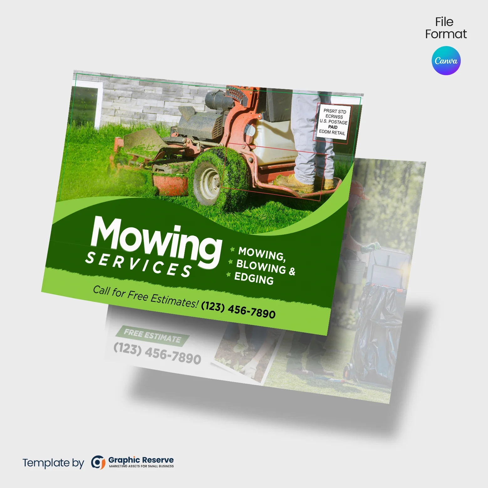 Lawn Care Landscaping Mowing Services EDDM Postcard Canva Template. vista print compliant 9×6.5 EDDM postcard.