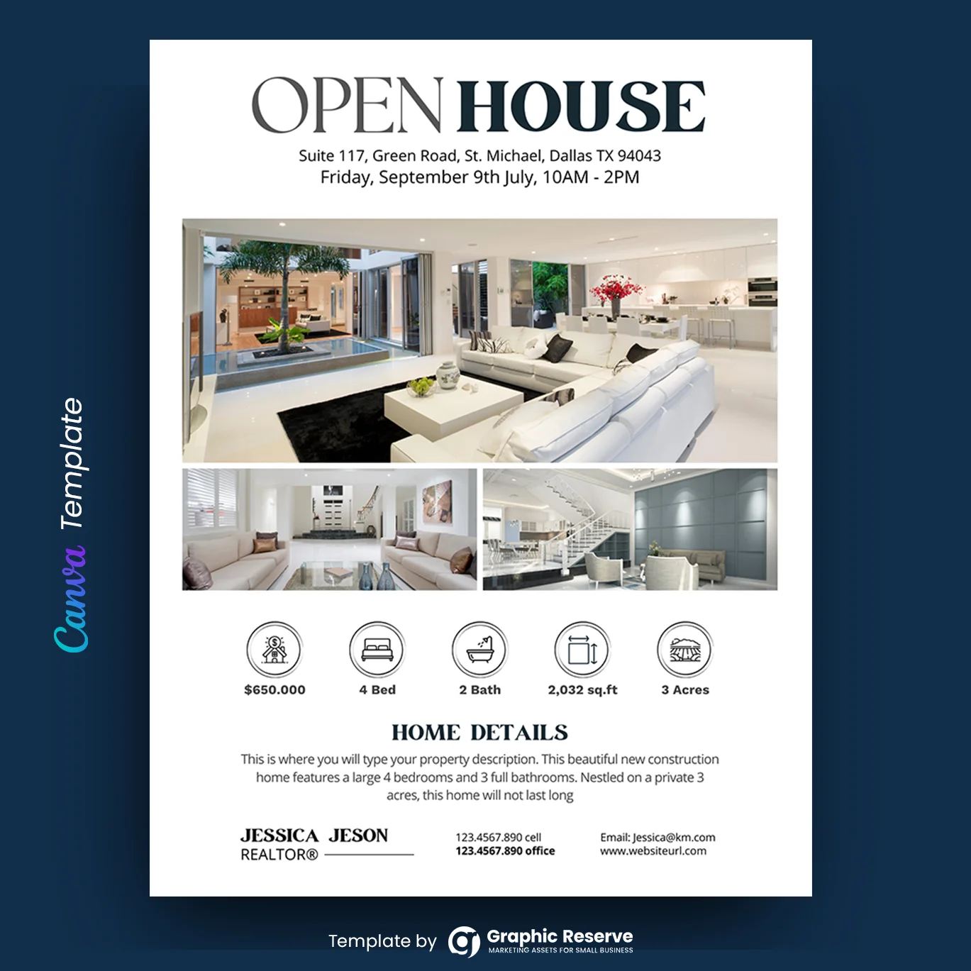 Selling A House Real Estate Realtor Marketing Flyer Template. You can also use this Open House Flyer canva template for various advertising purposes. Easily Editable for easy understanding Canva. This template is well-organized and structured. Images, texts, and colors are fully editable. You can edit them quickly and easily. File Information: