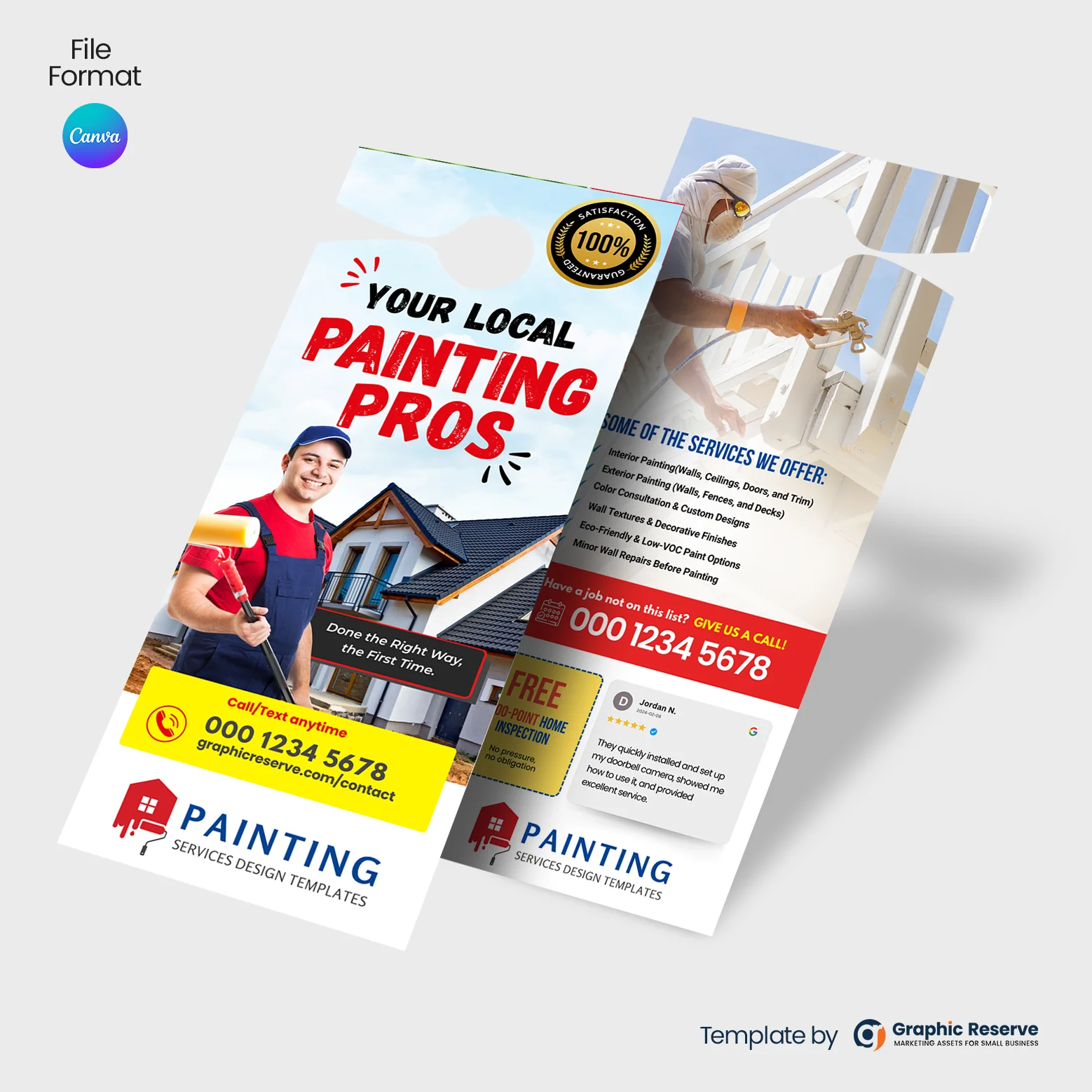 Promote your painting business with this professional Painting Company Door Hanger Template for Canva. Designed to fit standard VistaPrint dimensions, this 100% customizable template makes it easy to showcase your services, contact details, and special offers. Whether you’re advertising residential or commercial painting, this eye-catching design helps you reach more local customers right at their doorstep. Simply open in Canva, edit the text, colors, and images to match your brand, then download and print. Perfect for door-to-door marketing, this template saves you time while making a strong first impression. Start attracting new clients with ease—no design skills needed!