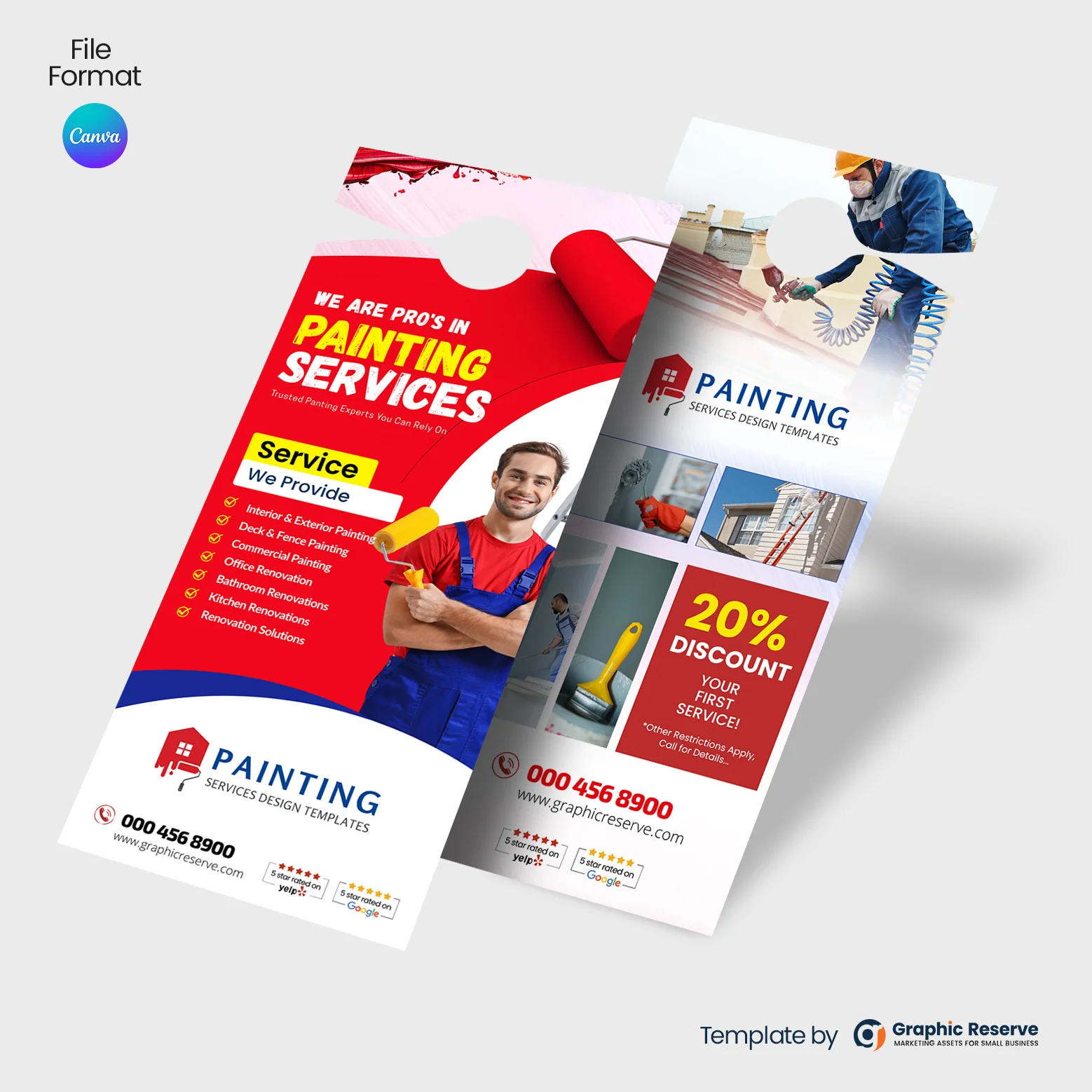 The design is fully optimized for the Canva Painting Door Hanger Design platform, acting as your personal, Custom Painting Door Hanger Canva tool. This makes it incredibly easy to create a unique Painting Company Door Hanger that truly represents your brand.