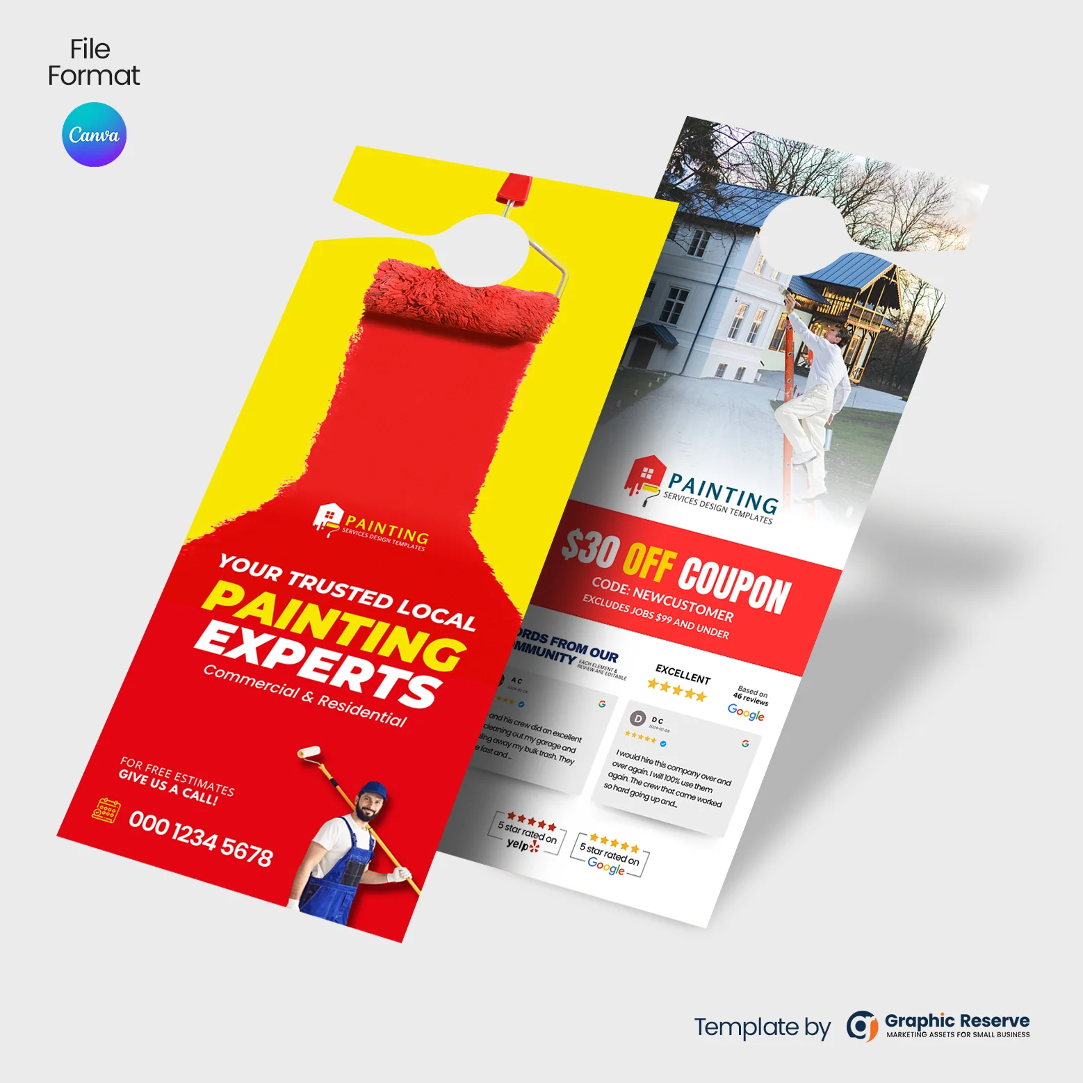 Our template is built specifically for the Canva Painting Door Hanger Design platform, making it fully editable and incredibly user-friendly. You don’t need expensive software; simply customize your design using the Custom Painting Door Hanger Canva interface to perfectly match your brand colors and logo.