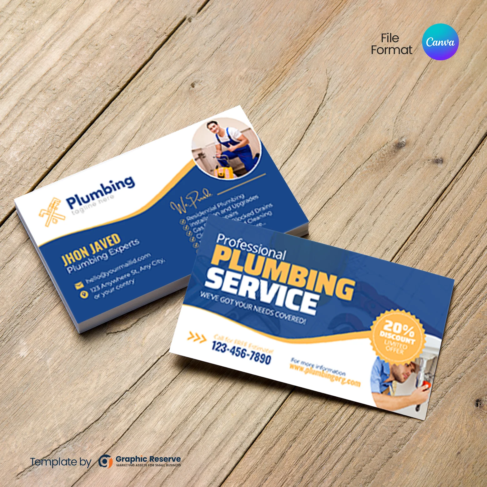 Canva Plumbing Business Card Design – Get noticed with this sleek plumbing business card design. Fully customizable to fit your business details.