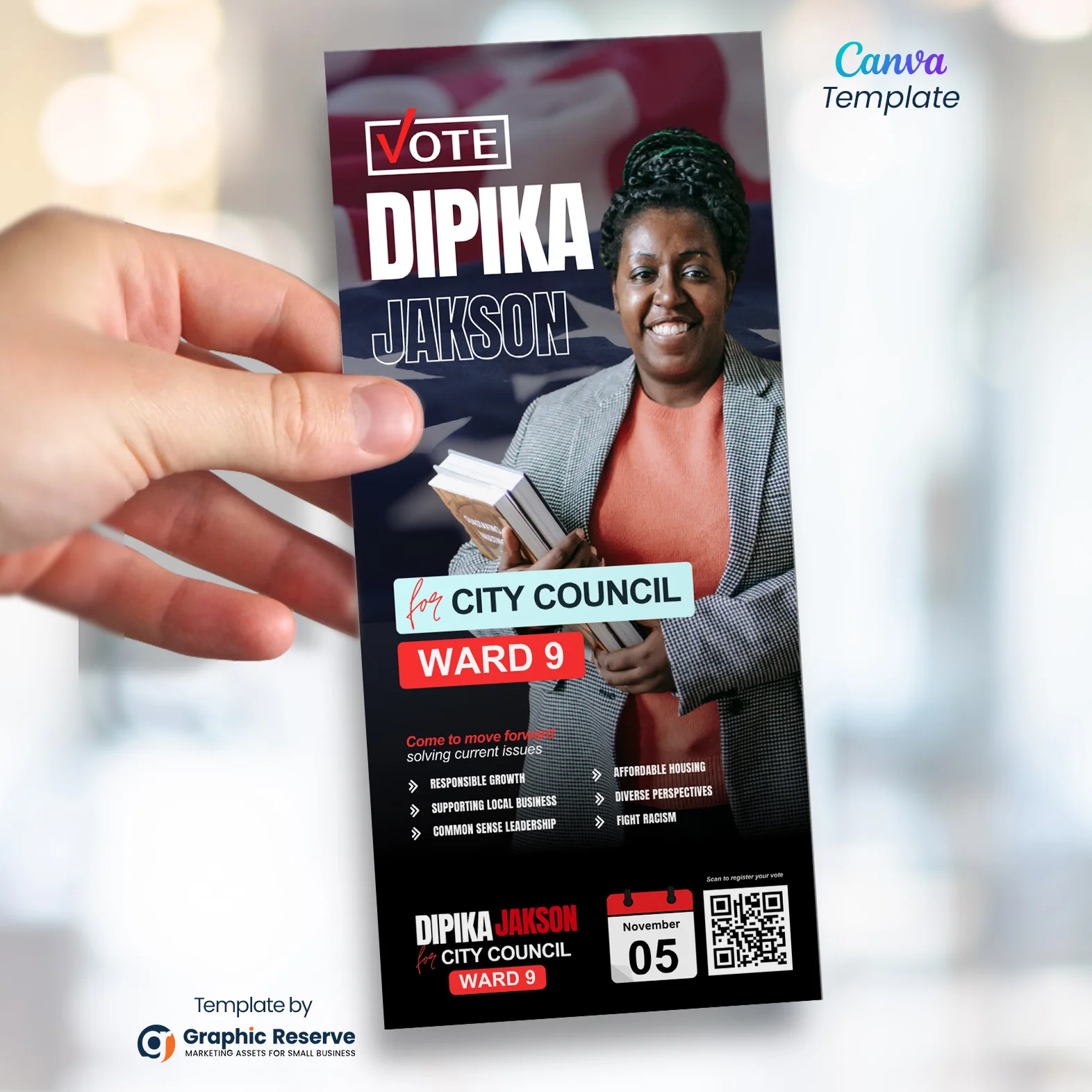 Political Candidate Rack Card Design Canva Template