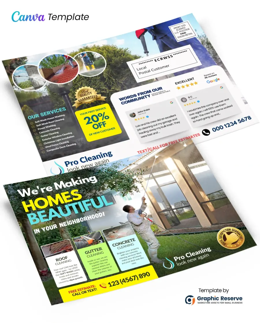 - Promotional Postcard: A versatile postcard template perfect for direct mail (including EDDM), leaving with clients, or local handouts to showcase your services and offers.