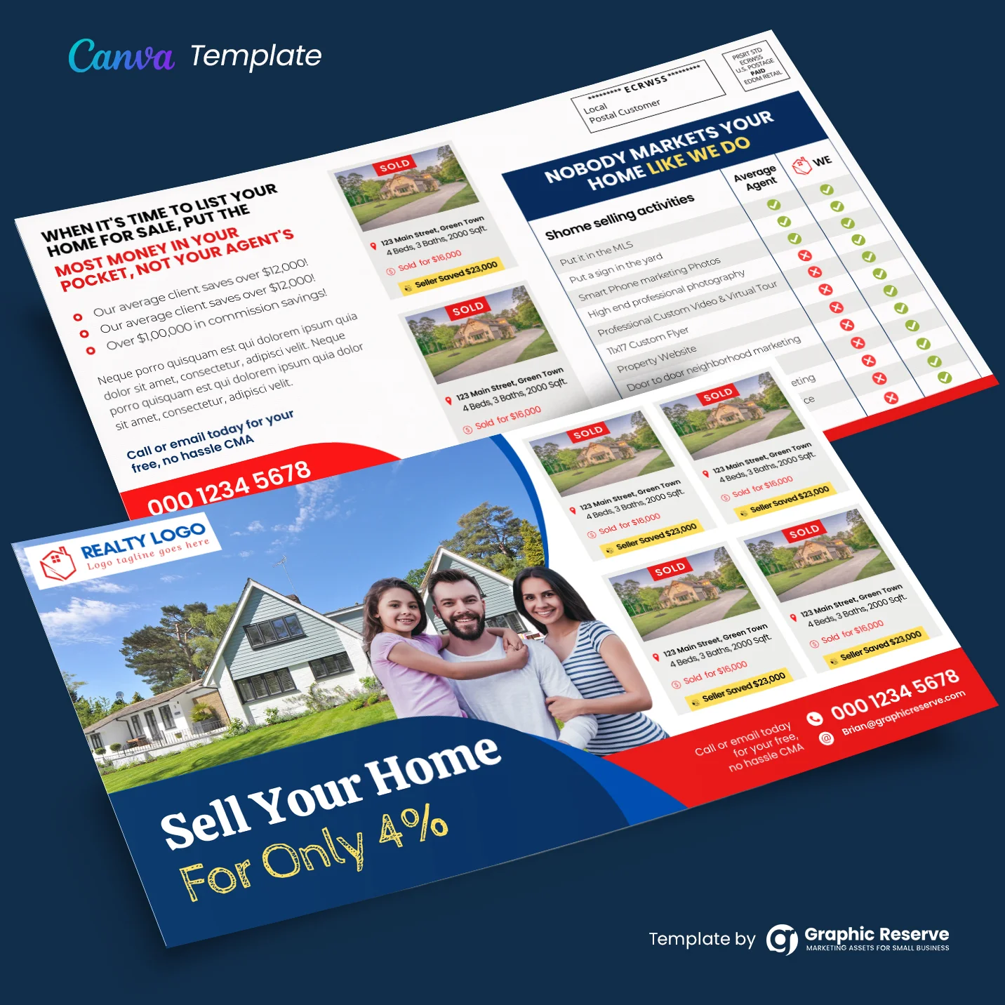 Real Estate Listing Service Direct Mail Marketing Postcard Template