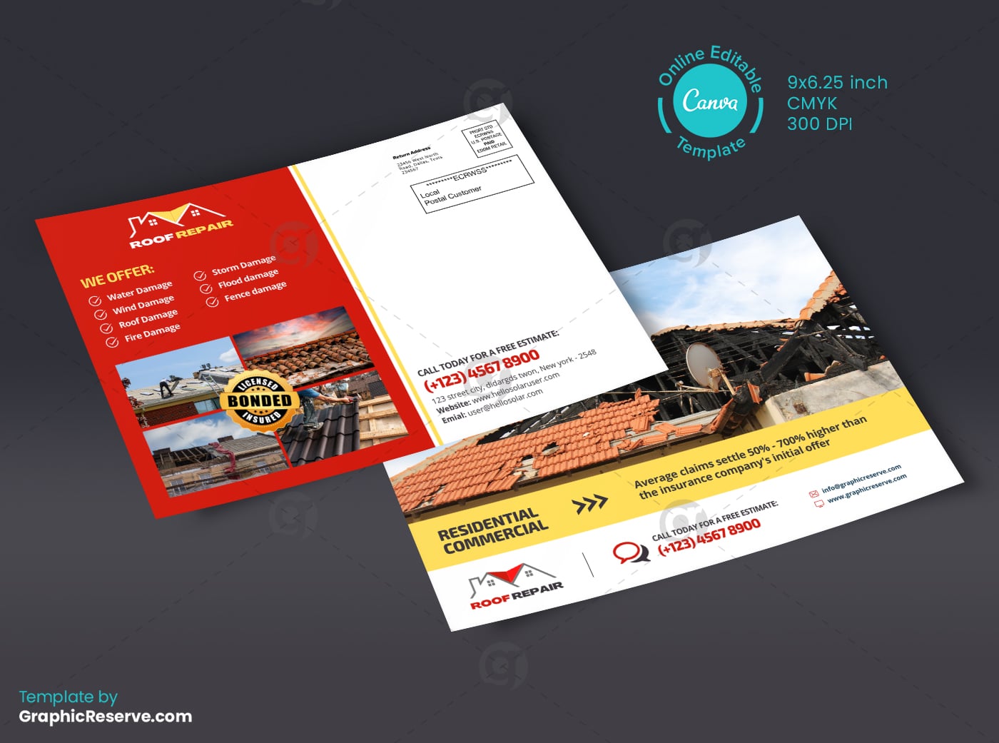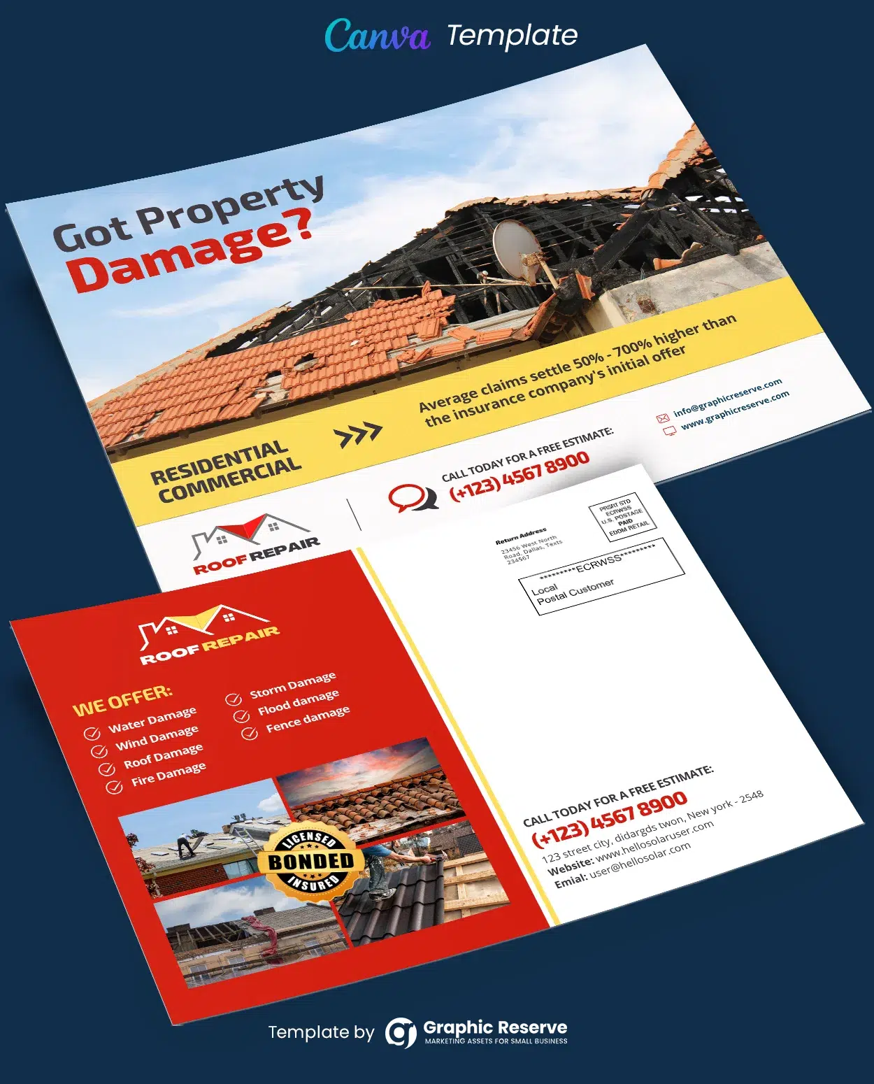 Be the first to review “Damage Property Roof Repair EDDM Postcard Canva template”