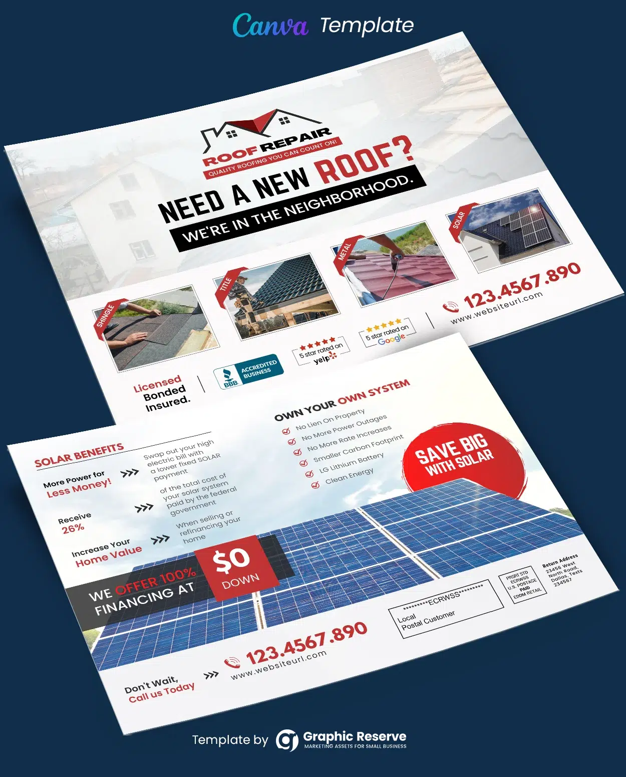 Roof Repairing Service EDDM Mailer Design (Canva template)