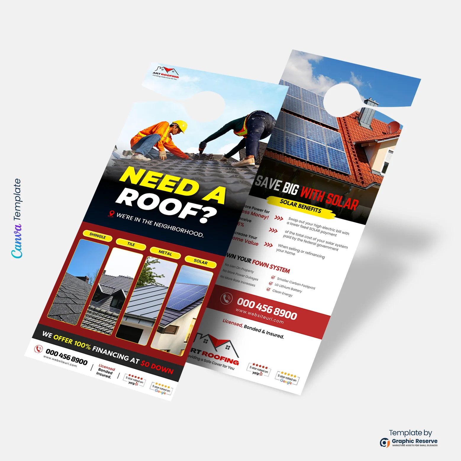 From roof advertising ideas to polished print materials, this design offers everything you need for effective outreach. Print and distribute your flyers directly to target neighborhoods or leave them as roof door hangers on doorknobs for maximum visibility. Whether you’re looking for roofing door hanger ideas or ready-to-use designs, this template gives you a professional head start. Turn every door into a marketing opportunity and win more roofing projects with a flyer that’s as durable as the roofs you build.