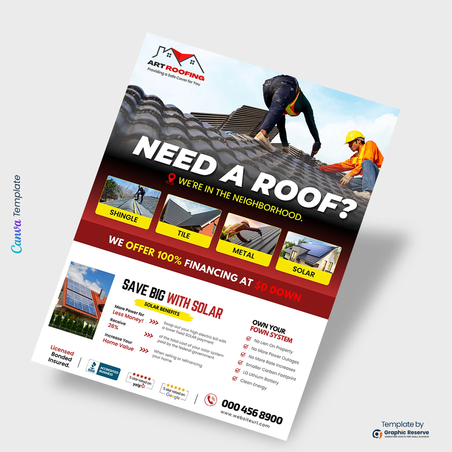 Create eye-catching roofing flyers with this editable Canva template. Perfect for roofing company advertising, service promotions, and creative roofing ads, this design makes it easy to showcase your offers, highlight services, and attract homeowners looking for roof repairs or installations. Ideal for roofing marketing campaigns and local advertising.
