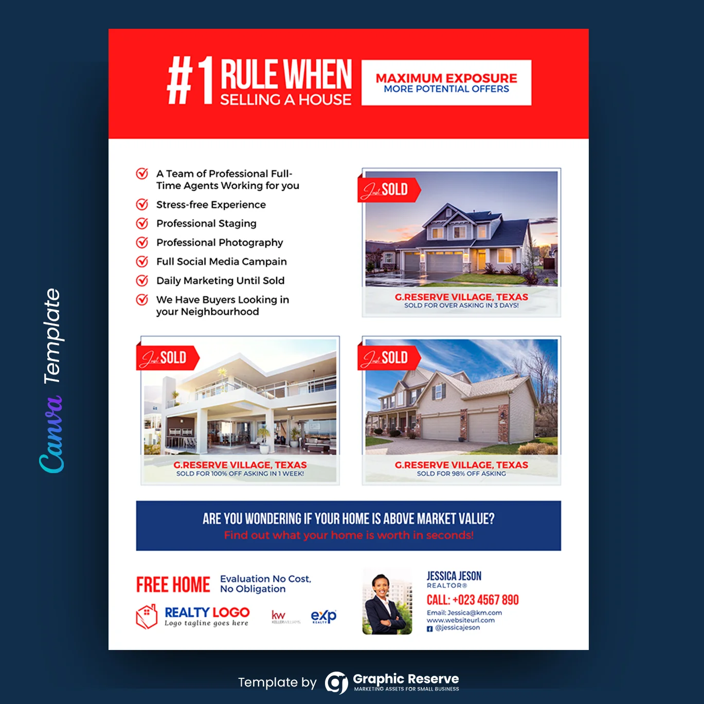 Selling A House Marketing Flyer Design for Real Estate Agents (Canva template)