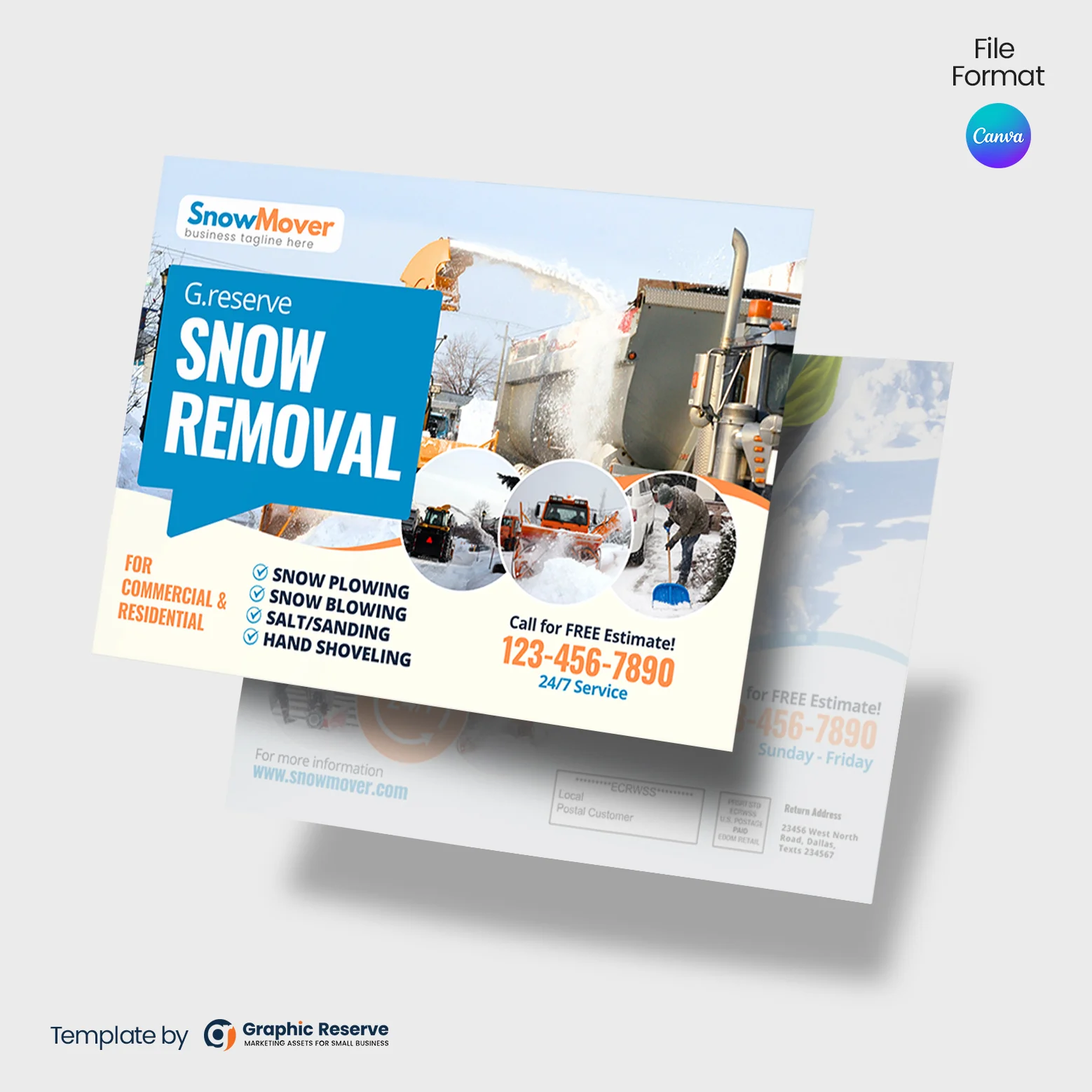 Snow Removal Direct Mail Marketing EDDM Design Template Easy online customizable, all you need to know is the very basics of Canva to change your details and images then It`s print-ready!