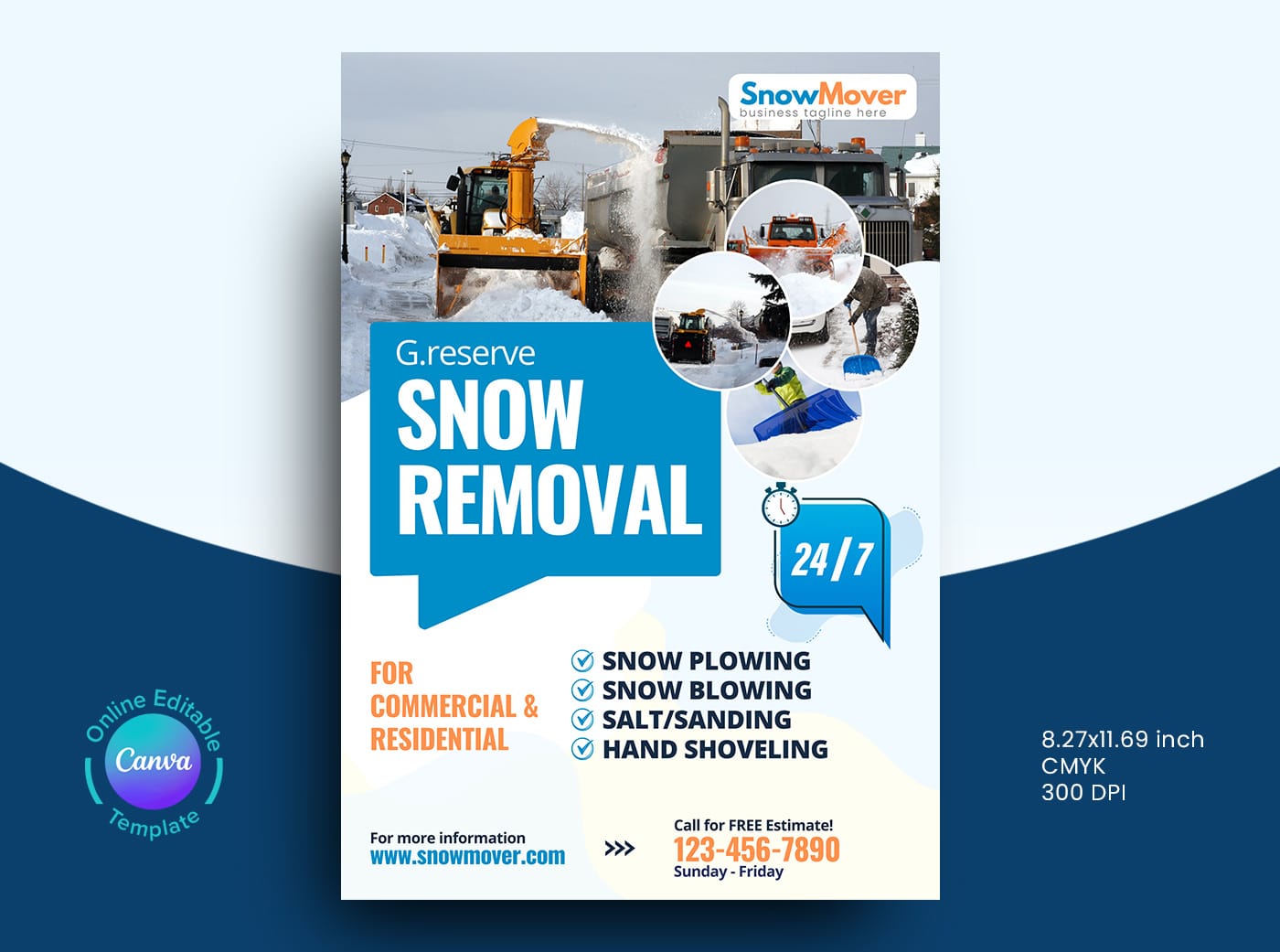 Snow Removal Flyer Design Template Easy online customizable, all you need to know is the very basics of Canva to change your details and images then It`s print-ready!