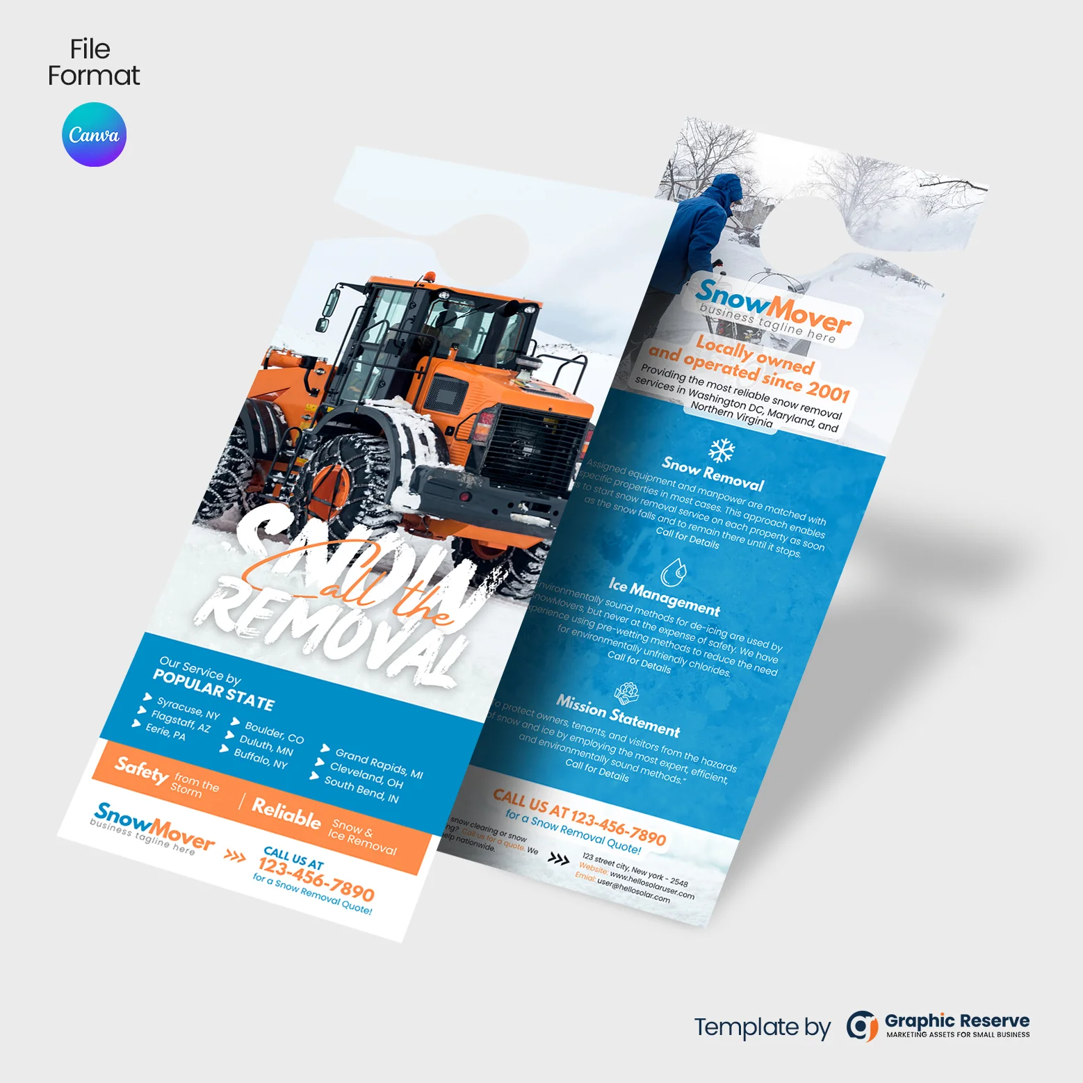 Snow Removal Door Hanger Design Template Easy online customizable, all you need to know is the very basics of Canva to change your details and images then It`s print-ready!