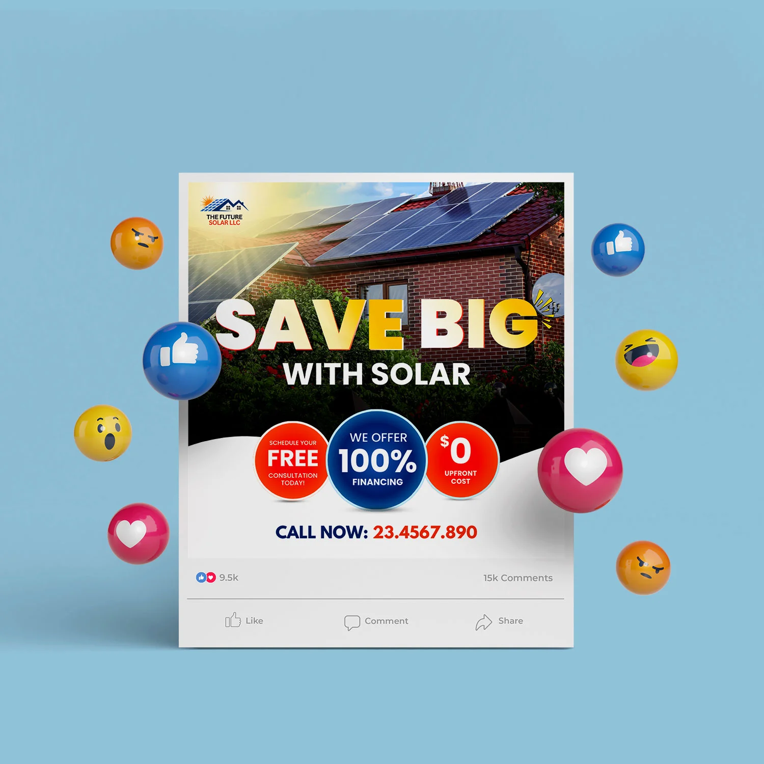 Canva solar digital marketing poster and story ad template for Facebook, linkedin and instagram.