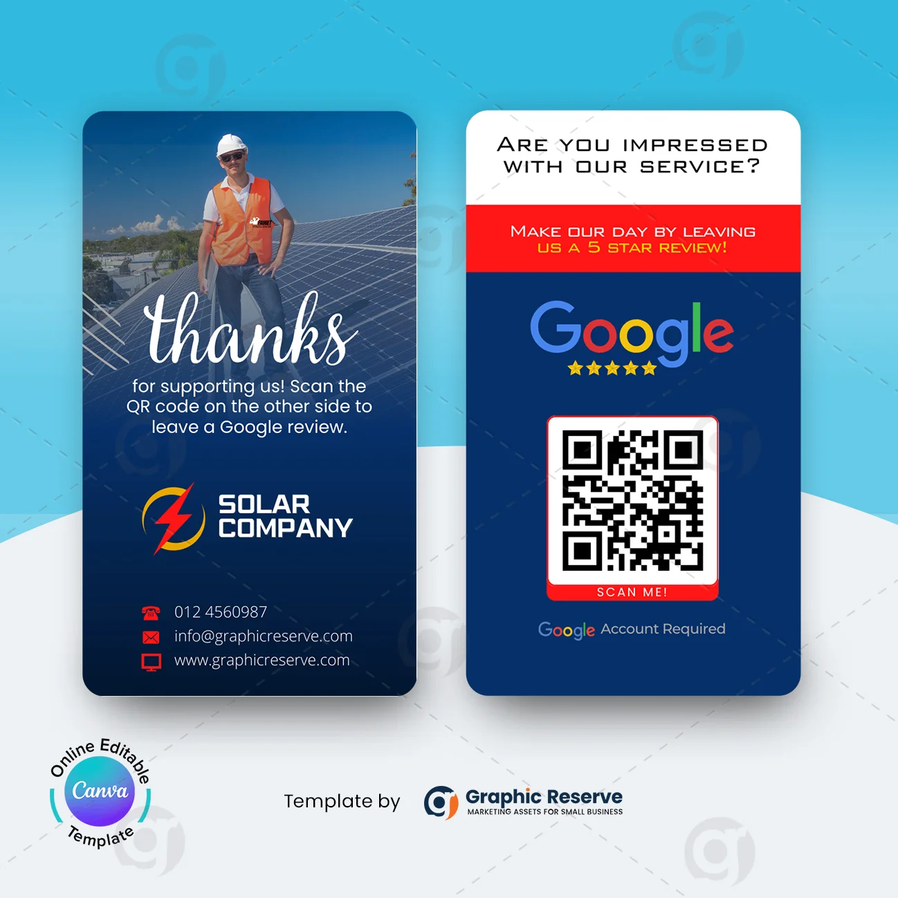Solar Google Review Request Business Card | Canva Template | VistaPrint Size